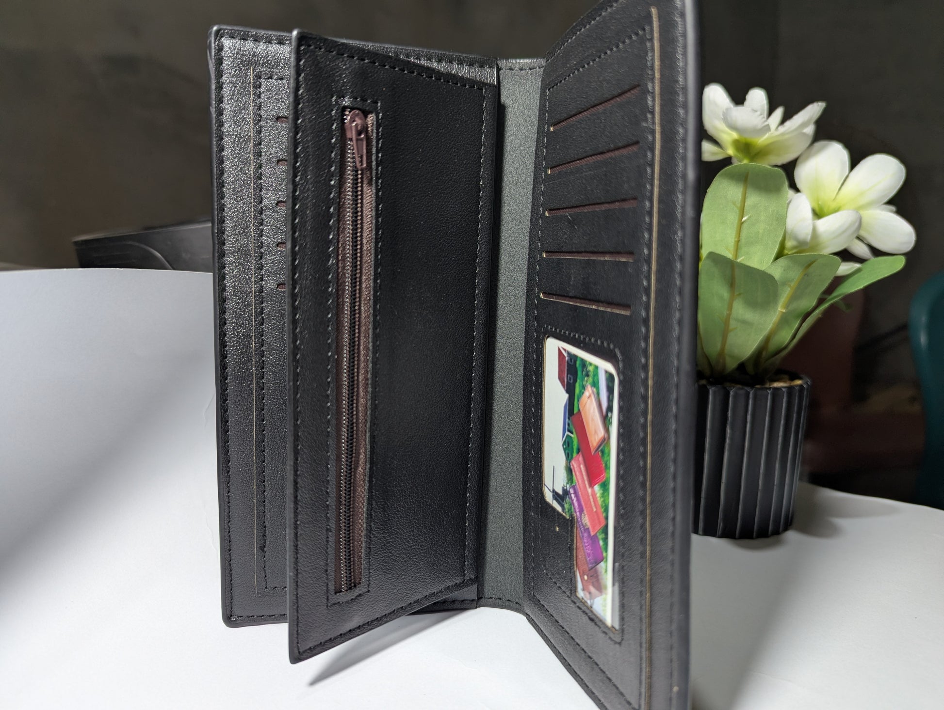Multiple Bill Sleeves: Deep interior pockets designed to neatly separate cash, receipts, or travel tickets.